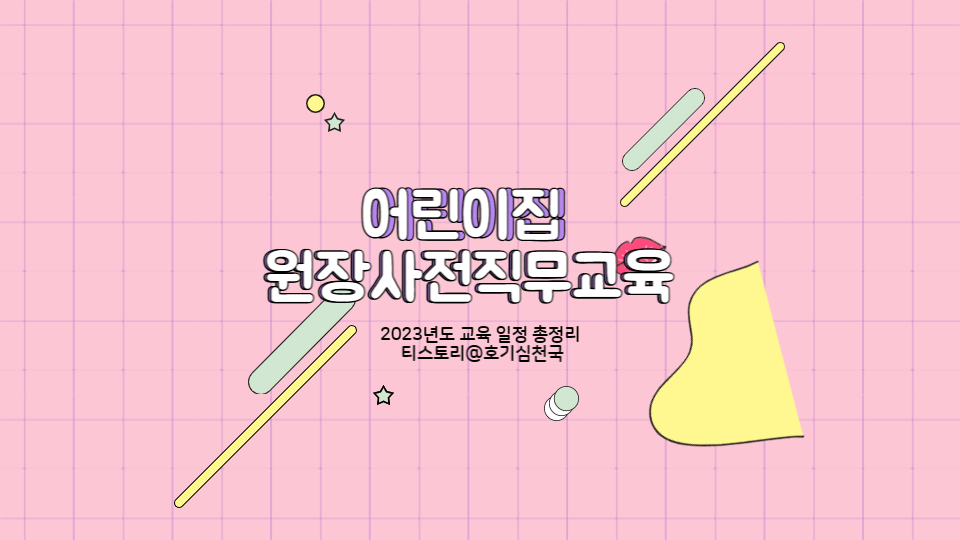 2023년 개설 및 개설 예정 원장사전직무교육 일정을 공유하니 신청기간과 교육날짜(주간, 야간, 평일, 주말 다양한 조건 등을 고려해야 함)를 참고하셔서 수강할 수 있는 여유가 되는 시기에 필요한 교육을 들으시기 바랍니다.