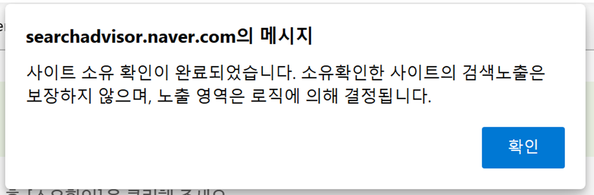 5. 메타태그 복사 후 소유확인하면 정상적으로 '사이트 소유 확인이 완료되었습니다.' 라는 메세지가 출력됩니다.