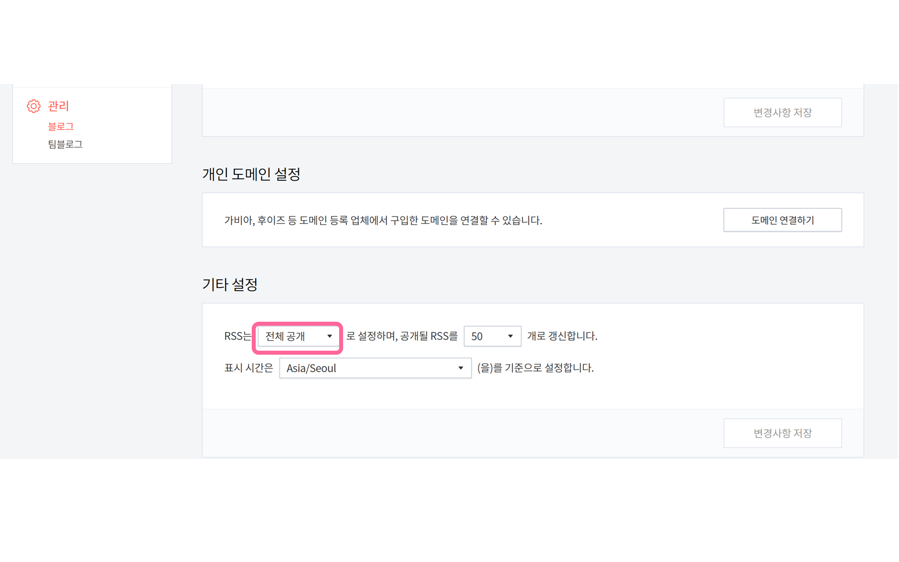 (+) 만약 RSS 본문 크기를 줄여주세요 라는 메세지가 출력될 경우에는 티스토리 설정 - 관리 - 블로그에서 RSS 전체공개를 부분공개로 변경하고 RSS 등록을 마친 뒤, 다시 전체 공개로 바꿔주면 된다고 합니다!