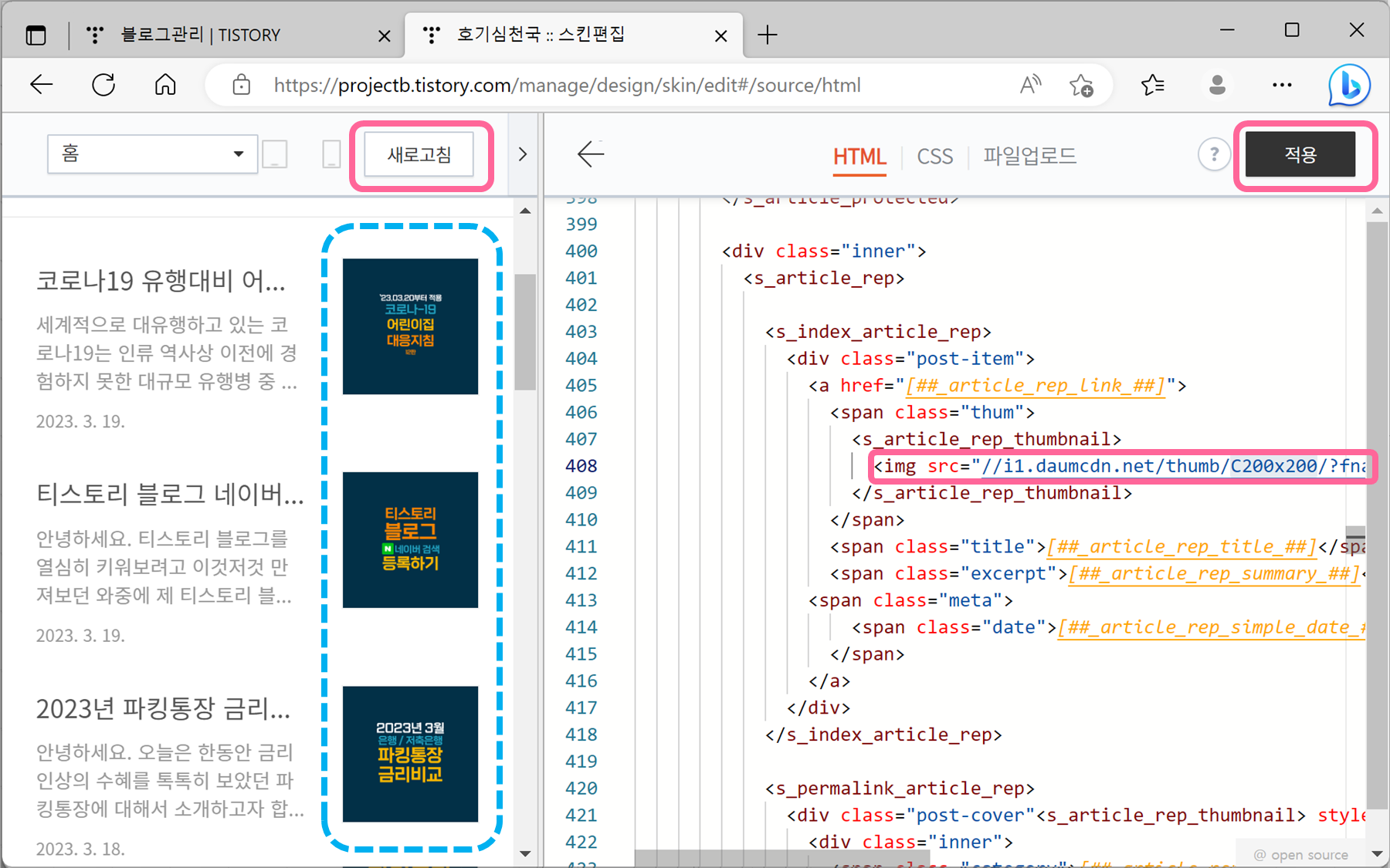 티스토리 썸네일 크기 정사각형으로 변경하기