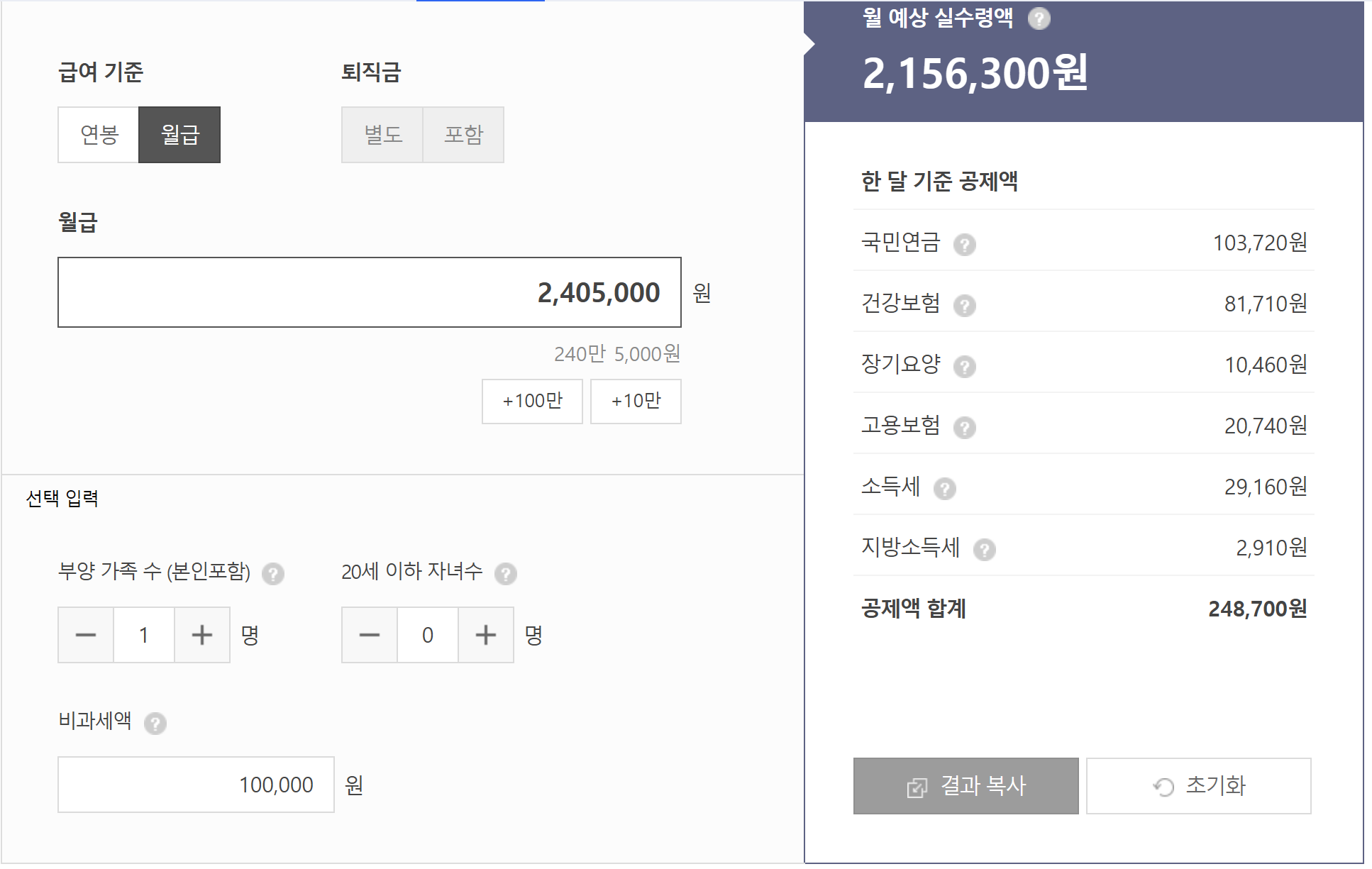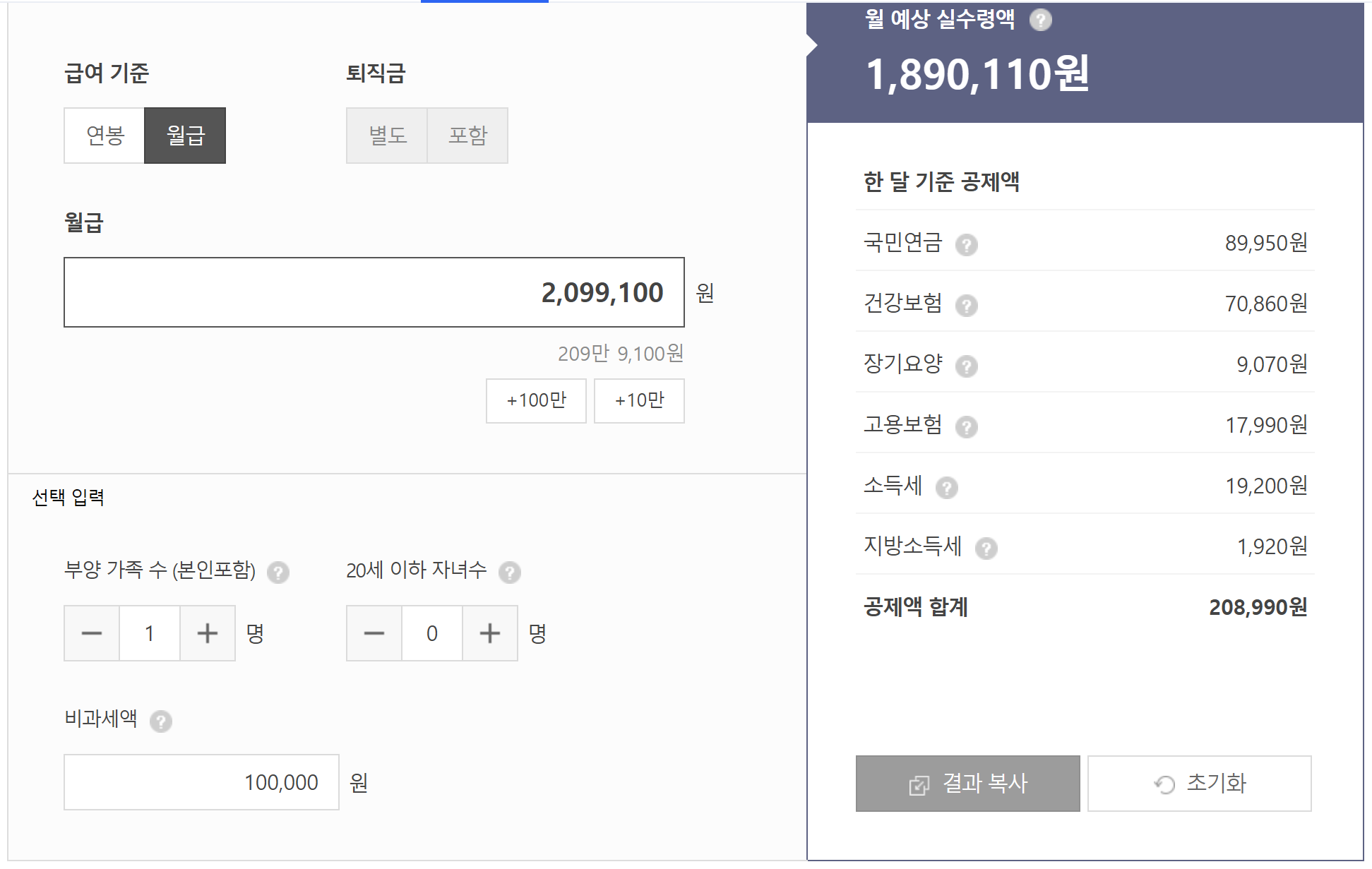 계산기의 결과는 오차가 없이 정확하지는 않으나 제 급여명세서와 비교했을 때 크게 다르지 않음이 확인되었습니다.