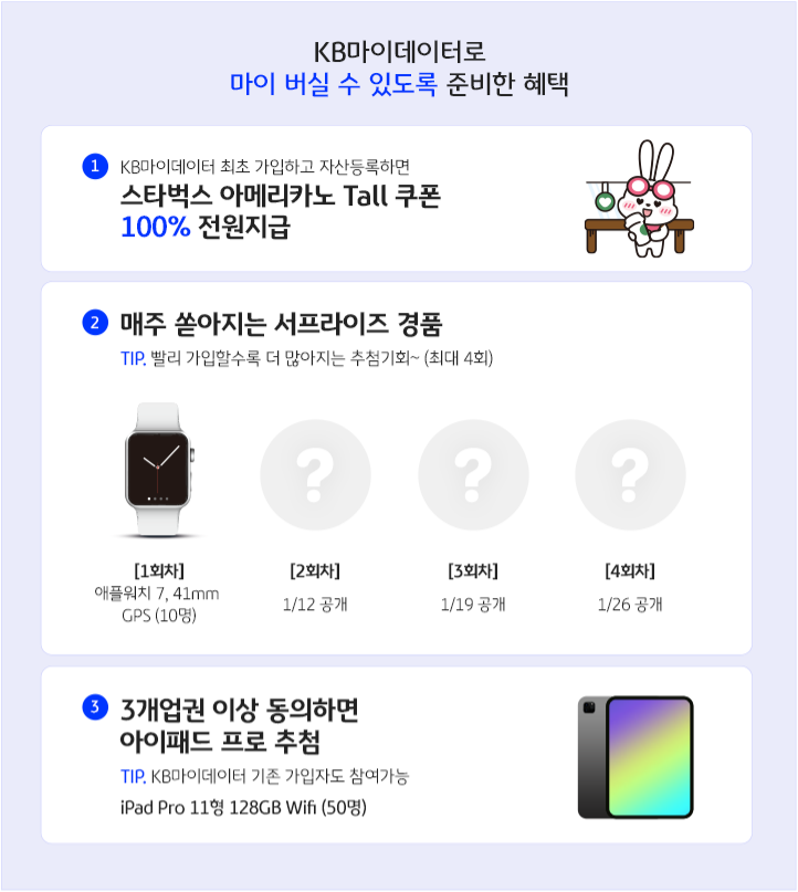 다양한 은행, 카드사, 금융투자사, 저축은행, 핀테크 등에서 마이데이터 사업을 시행하며 다양한 이벤트를 선보이고 있는데요. 스타벅스 기프티콘과 아이패드 프로 등 고객들의 눈을 이끄는 다양한 경품들을 이용하여 신규 고객 유치를 위해 열을 올리고 있는 모습입니다. 현재 진행되고 있는 마이데이터 이벤트와 혜택들을 살펴보겠습니다.