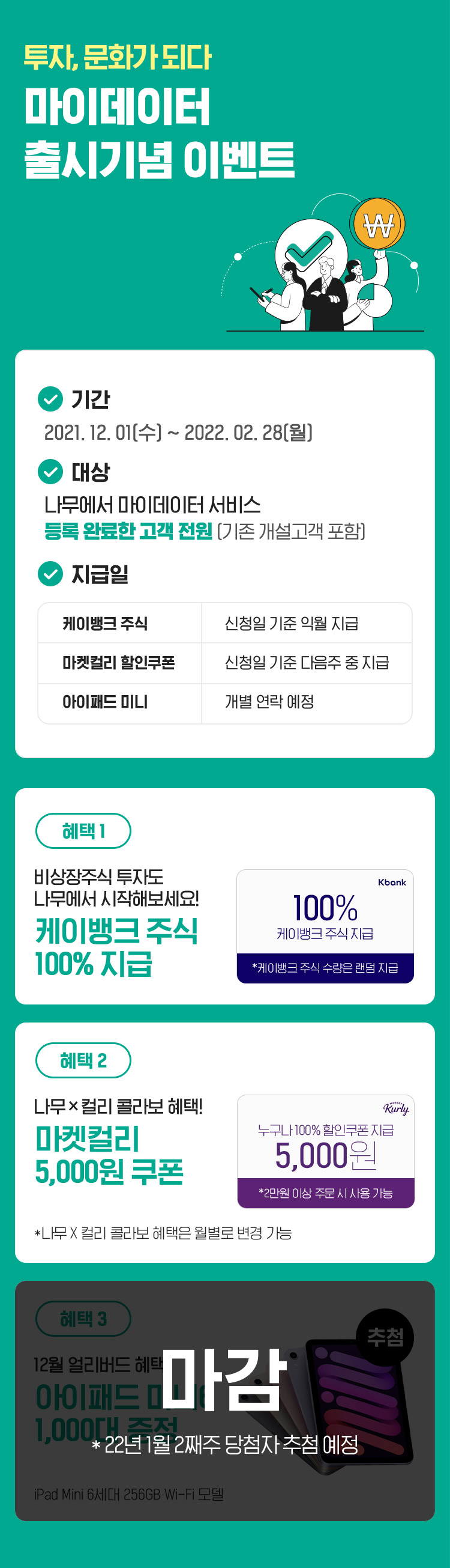 이벤트 대상 : 나무에서 마이데이터 서비스 등록 완료한 고객 전원 (기존 개설고객 포함)