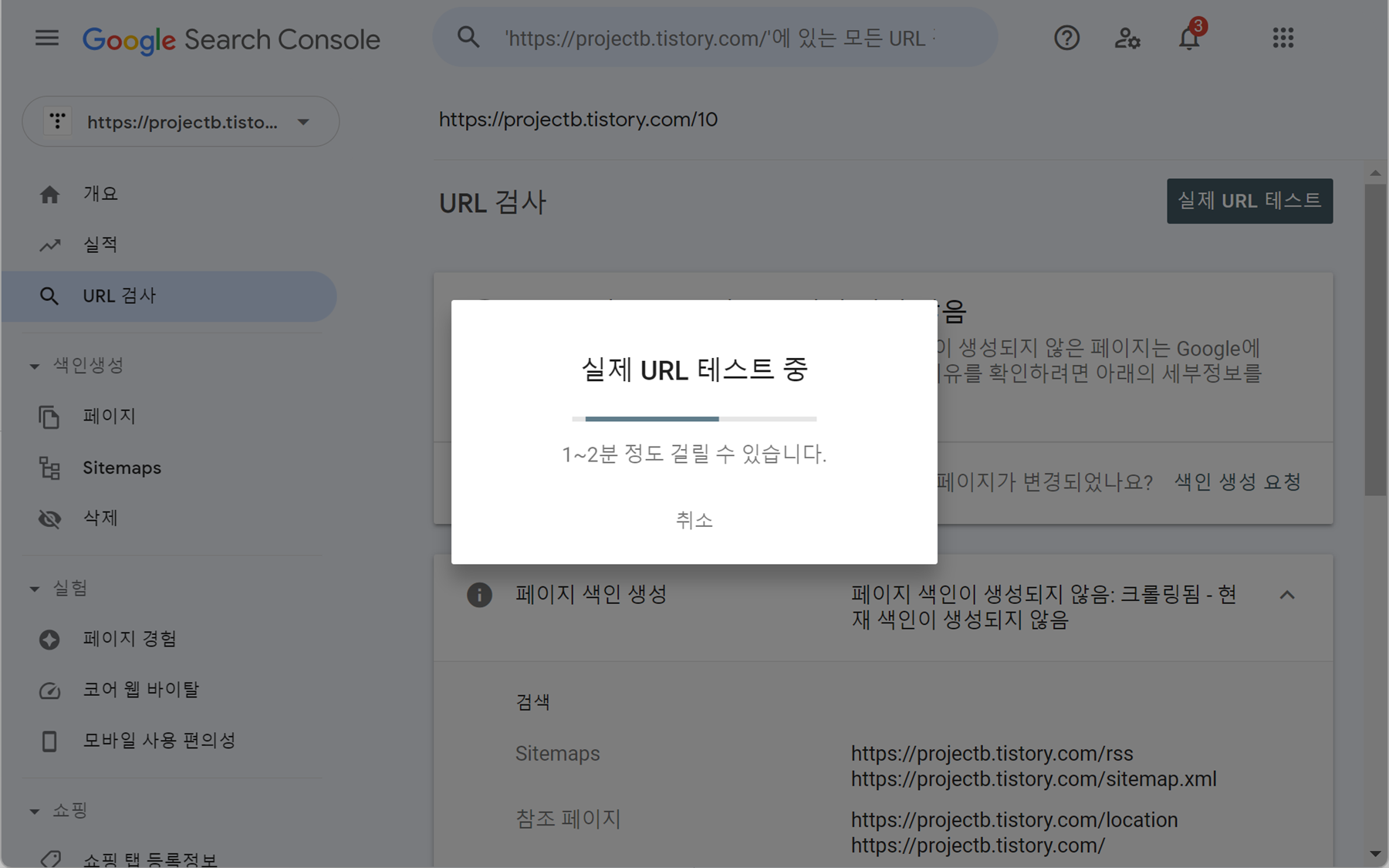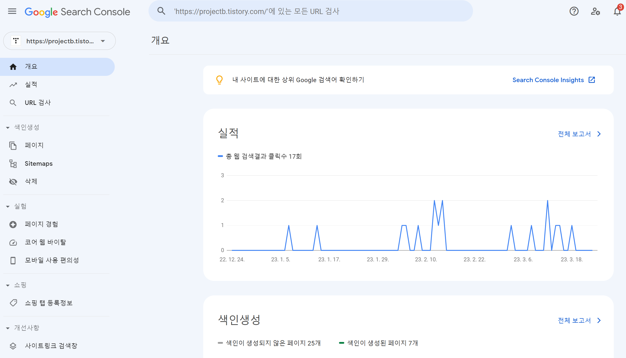 안녕하세요. 호기심천국입니다. 얼마 전 구글 서치콘솔을 활용하여 호기심천국 티스토리(https://projectb.tistory.com/)를 구글 검색에 등록시켜두었는데요.