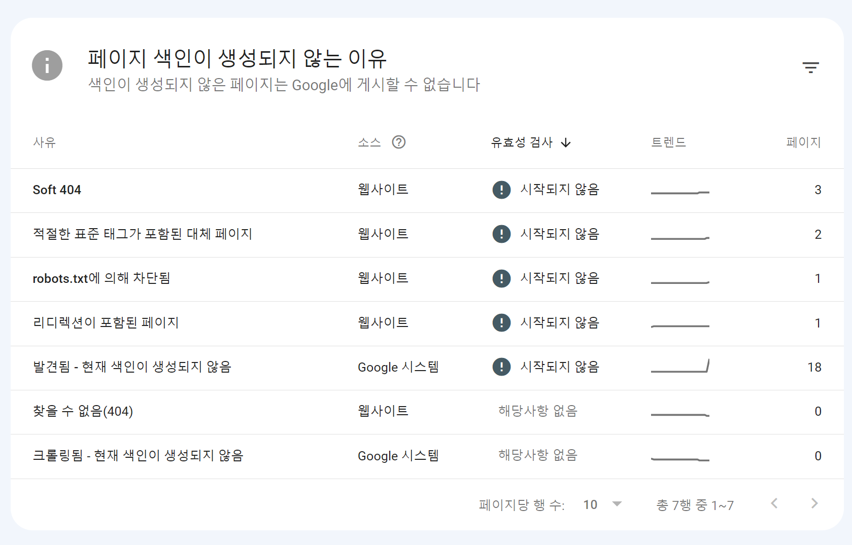 스크롤을 조금 내리니 제가 쓴 포스팅은 대부분 '발견됨 - 현재 색인이 생성되지 않음'에 해당되고 있었습니다.
