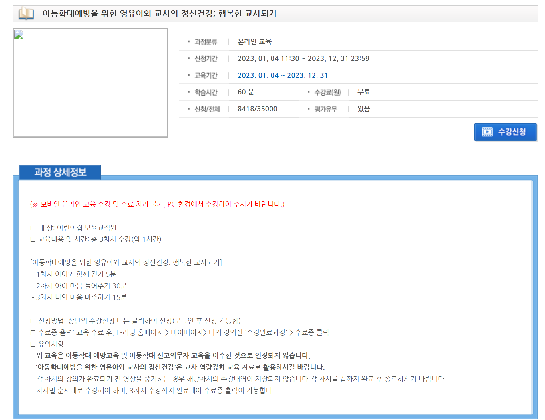 이는 교육 상세정보 유의사항에 정확하게 언급된 내용이기도 합니다.