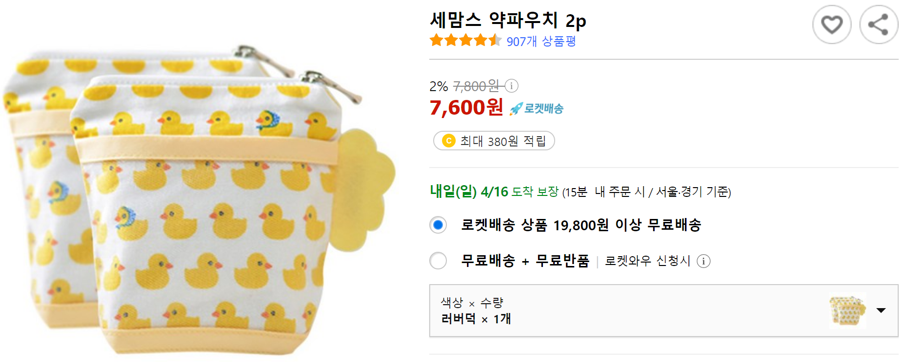 3. 쿠팡 / 약 파우치 / 19,800원 이상 무료배송 / 개당 3,800원꼴 (2개입 7,600원)