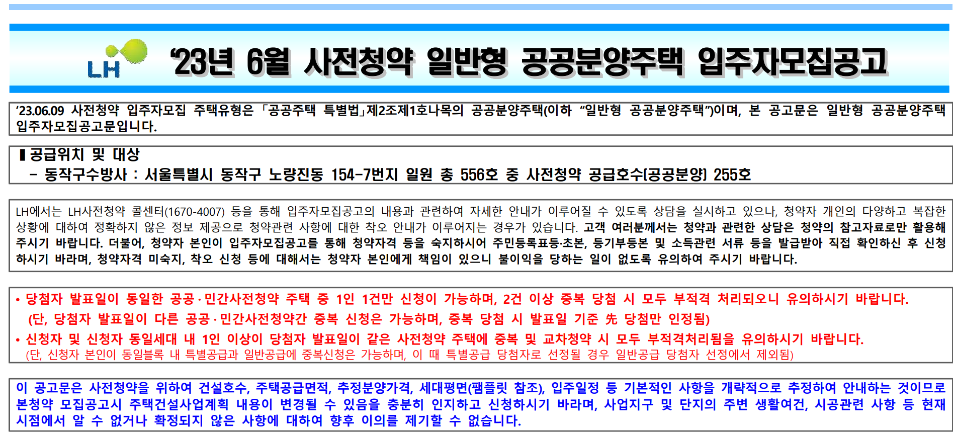 수방사 청약은 6월 19일(월)부터 특별공급 신청이 가능하며, 6월 21일(수)부터 일반공급 사전청약이 실시됩니다.