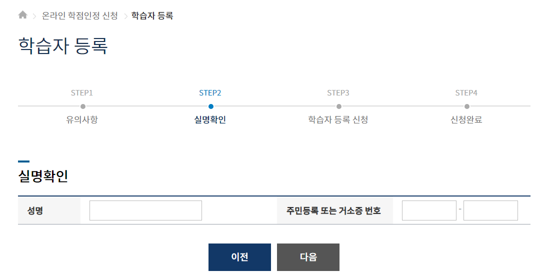 5. 학습자 등록에 필요한 실명 확인도 해줍니다.