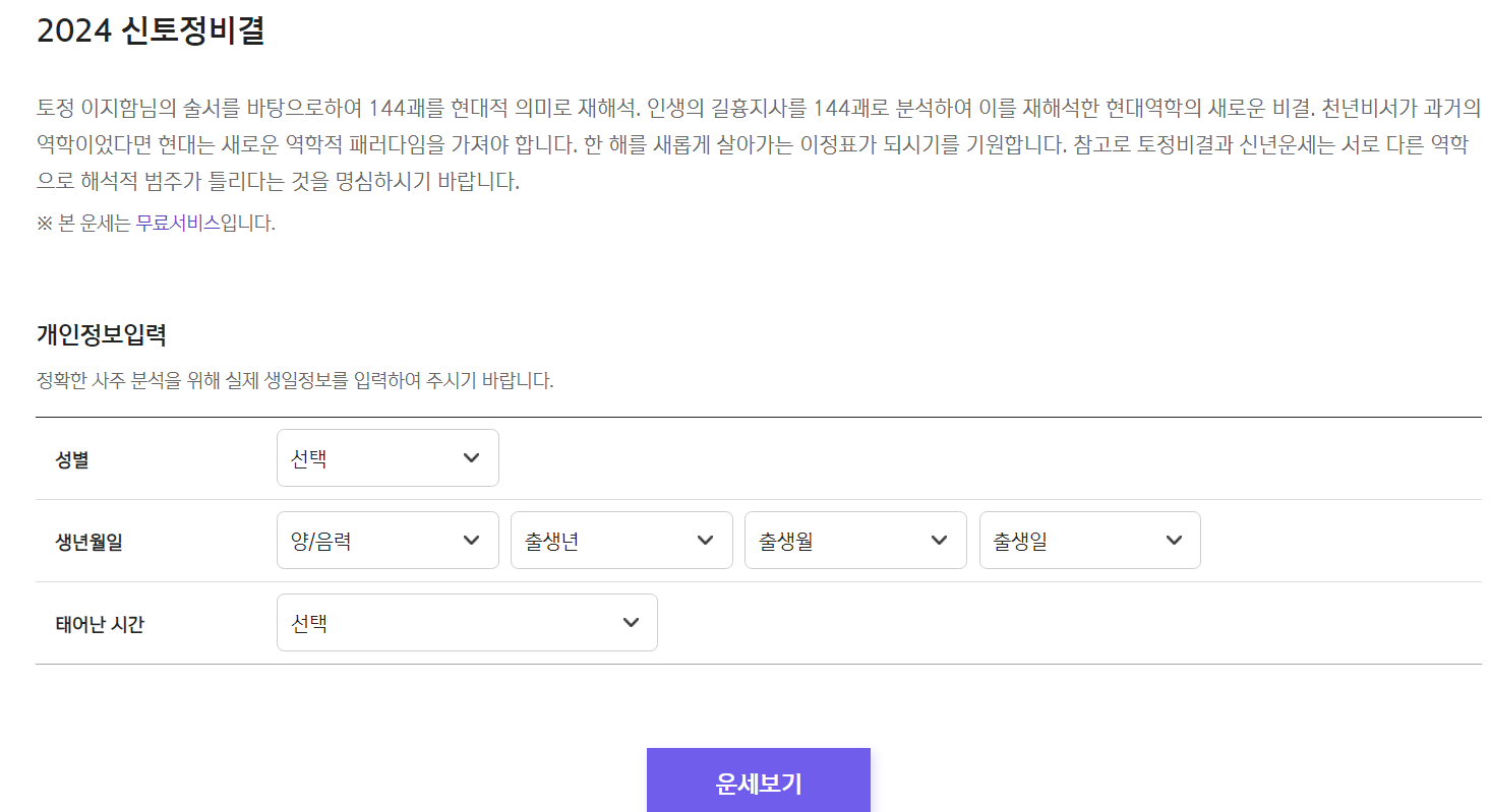 2. 2024 신토정비결을 눌러줍니다.