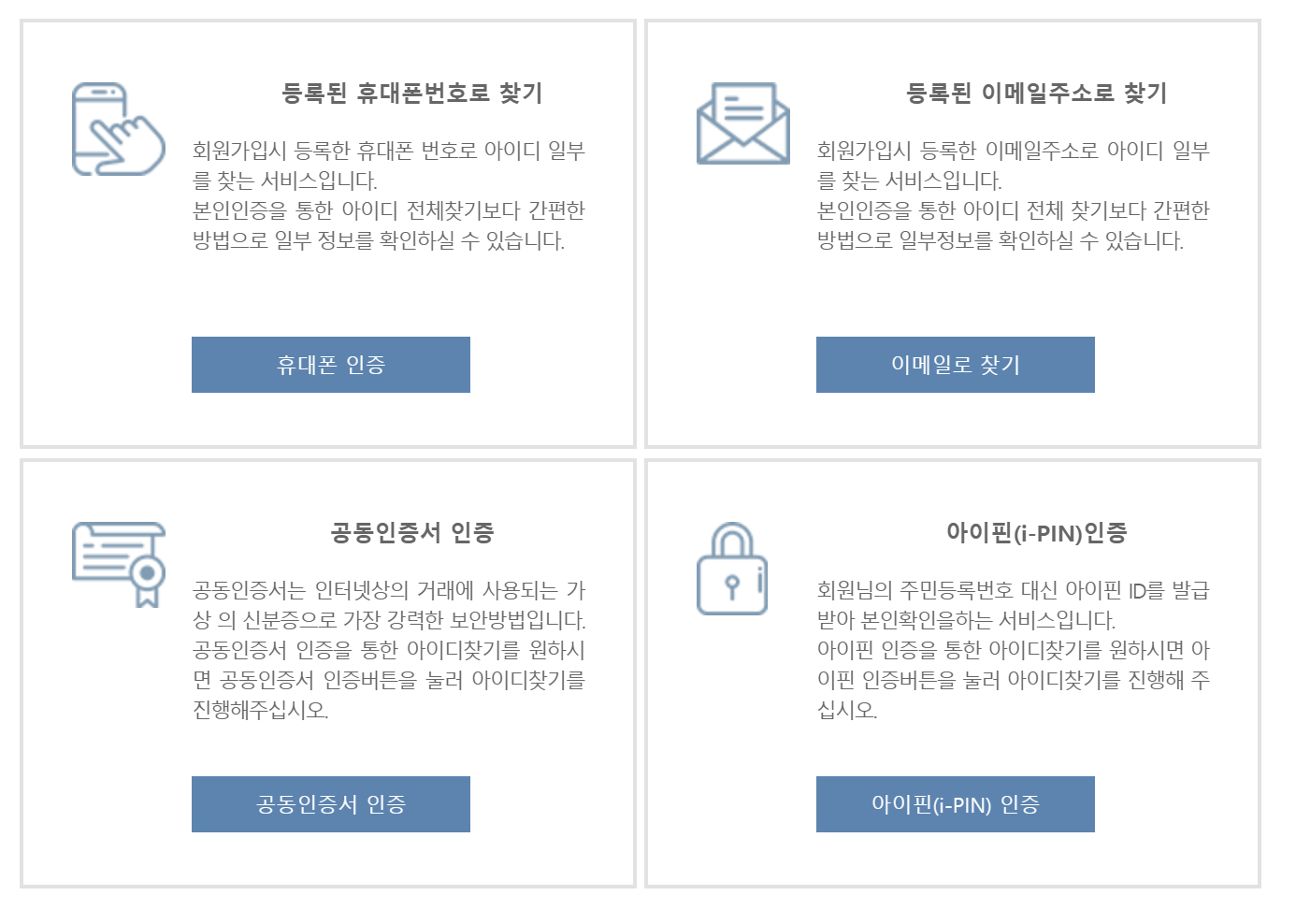 이메일 주소 혹은 휴대폰 번호나 아이핀 인증 추천드립니다.